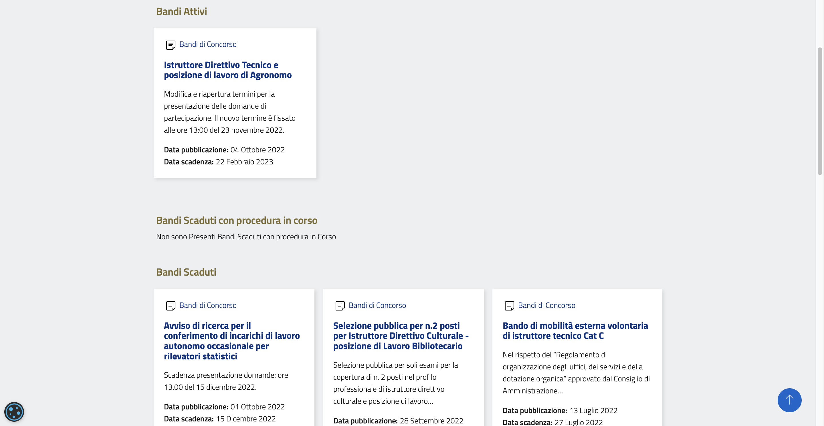 Questa sezione รจ il richiamo diretto alla sezione dell'Amministrazione Trasparente dove potrete trovare tutti i bandi, in corso e passati, che l'Amministrazione ha bandito.