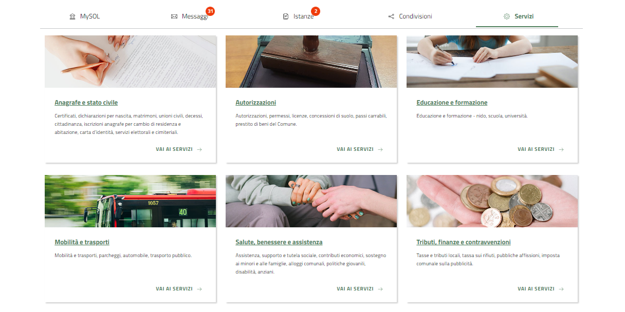 MySol: potrete accedere al vero e proprio sportello delle istanze, dove gestire tutta la vostra attività con l'amministrazione.