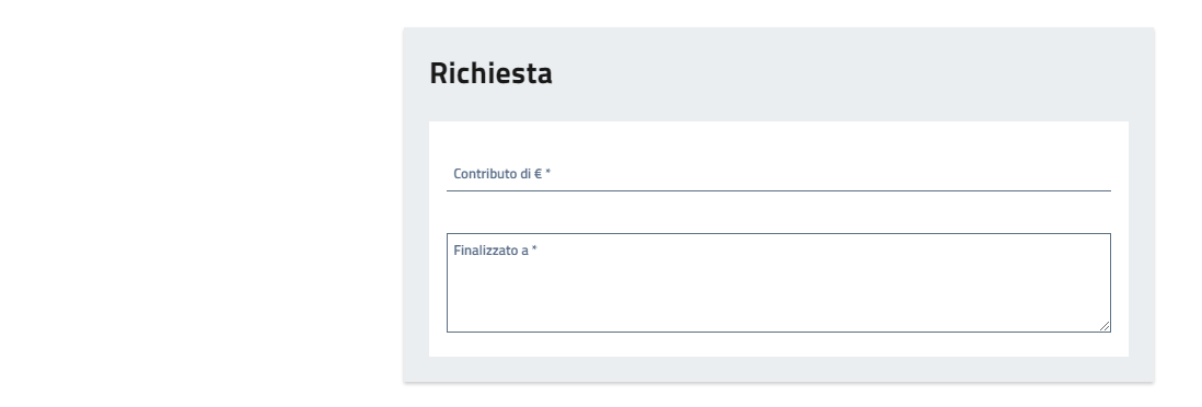 A seconda del bando e/o dei contributi messi a disposizione dall'Amministrazione, specificare l'importo del contributo richiesto e la tipologia, ovvero la finalità.